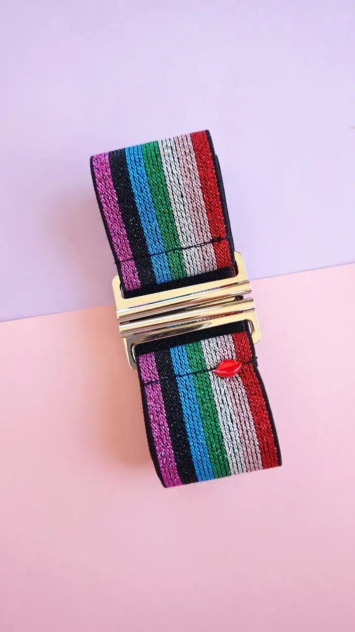 Pimpez votre tenue avec la ceinture élastique lurex multicolore Amélia et affirmez un style exclusif.