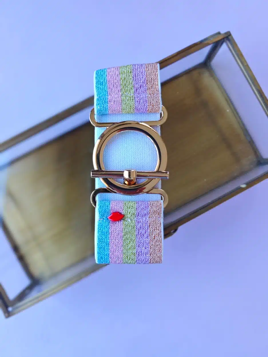 Pimpez votre tenue avec la ceinture élastique lurex multicolore Justina et affirmez un style exclusif.