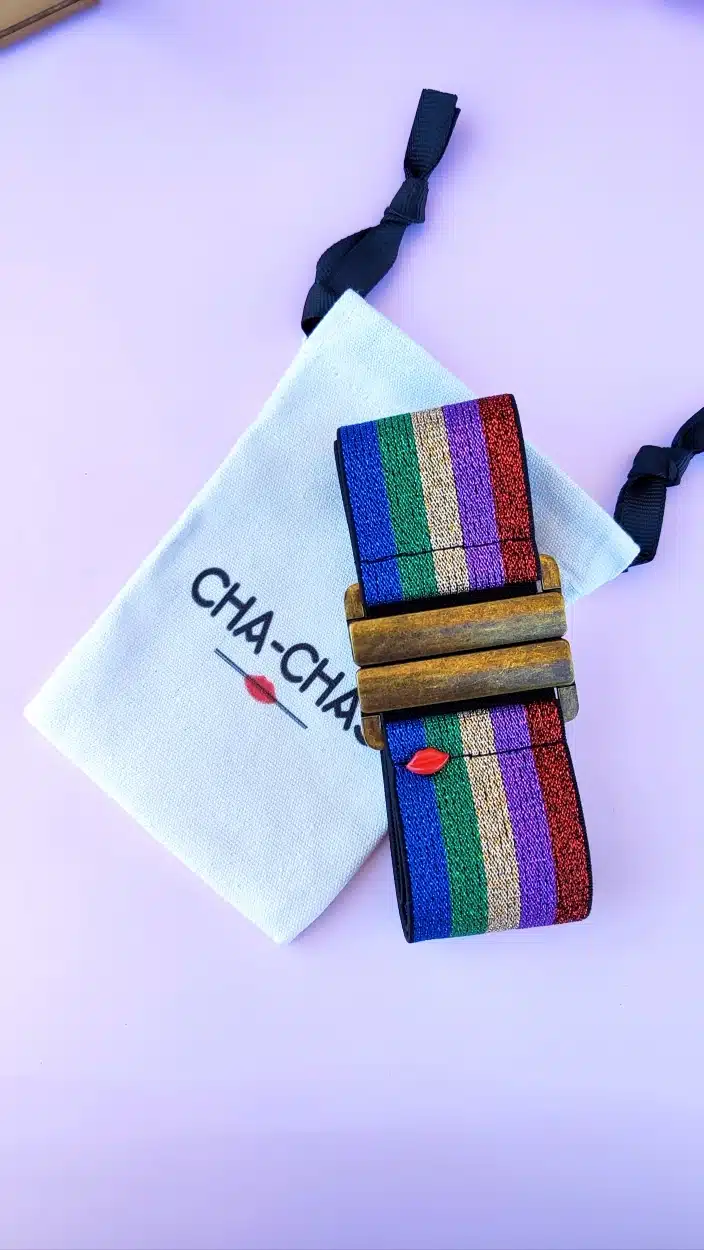 Pimpez votre tenue avec la ceinture élastique multicolore Miranda et affirmez un style exclusif.