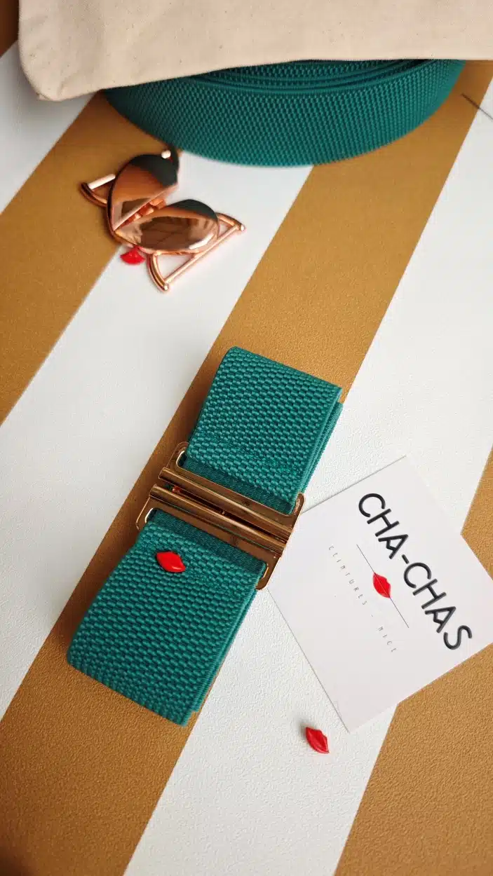 Pimpez votre tenue avec la ceinture élastique vert paon Paula et affirmez un style exclusif.