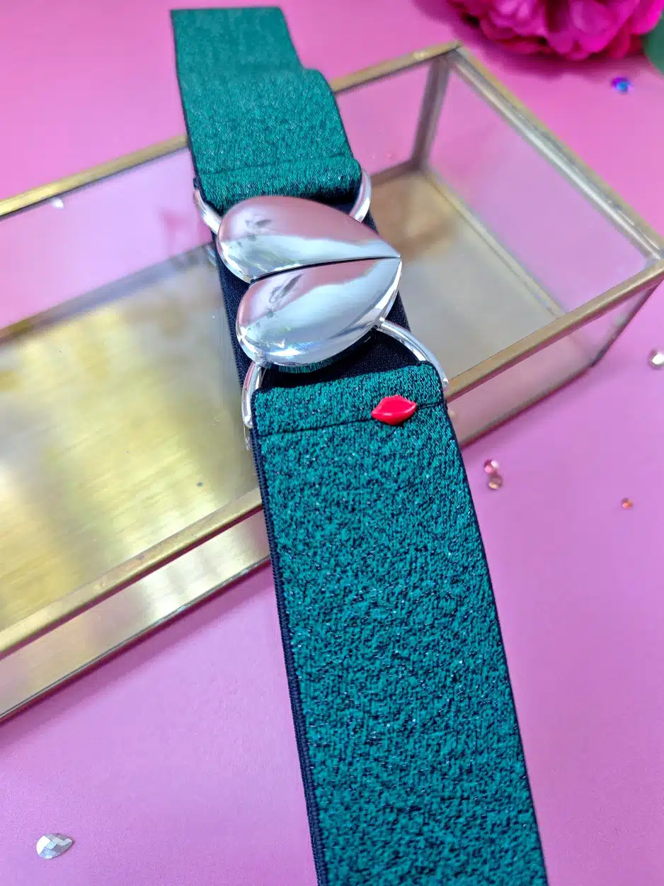 La ceinture élastique verte pailletée Lorena combine confort et raffinement.