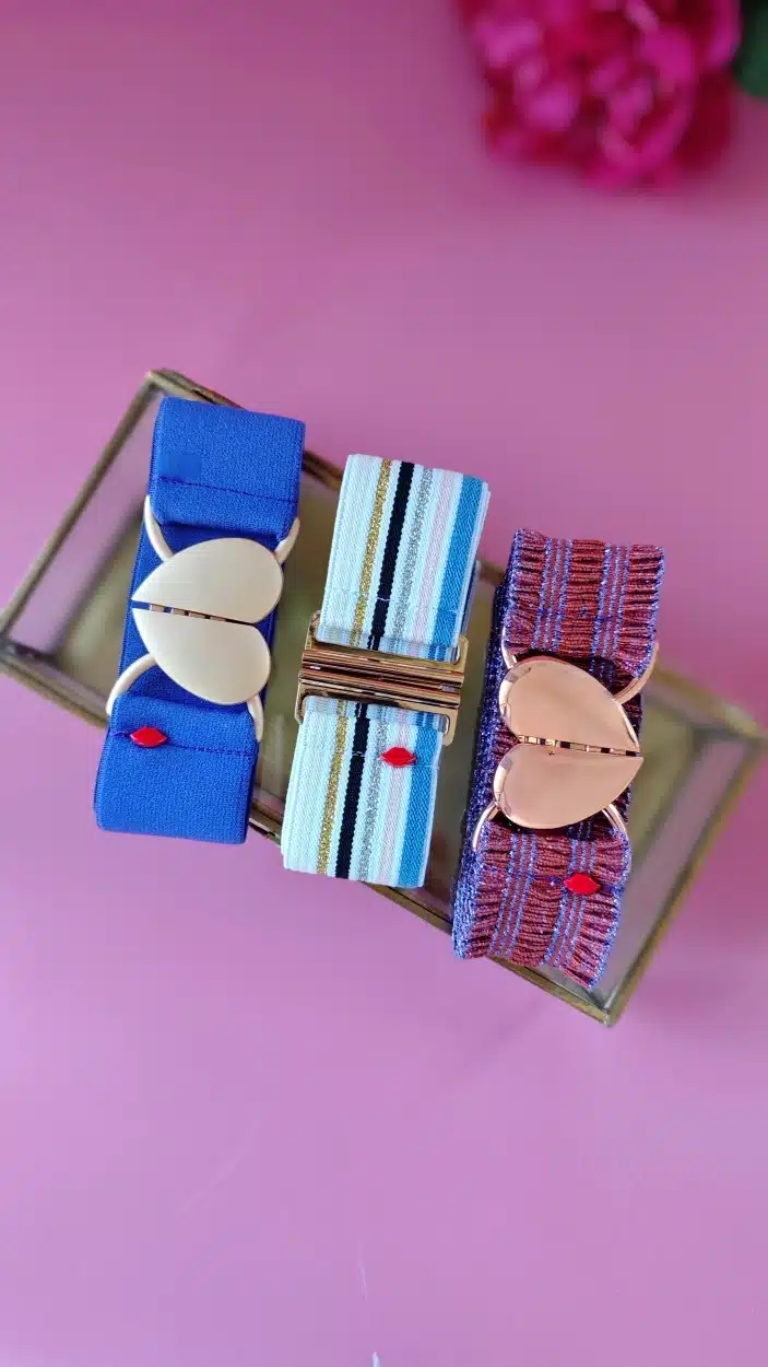 Ceinture réalisée exclusivement en tissu élastique avec boucle métallique.