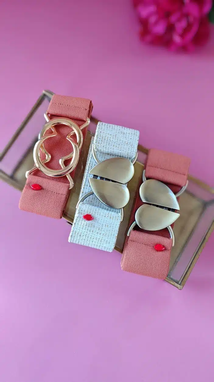 Ceinture réalisée exclusivement en tissu élastique avec boucle métallique.